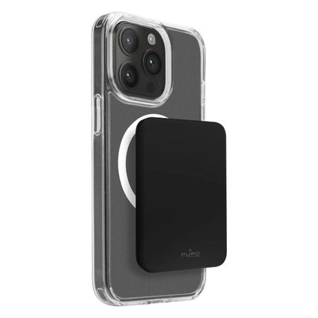 PURO Slim Power Mag (Schwarz) ist eine kompakte Powerbank mit kabelloser MagSafe-Ladefunktion . Die magnetische Befestigung hält sie an Ihrem Telefon ausgerichtet, sodass Sie Ihr iPhone bequem während der Nutzung laden können. Entwickelt für iPhone 12 und neuere Modelle; funktioniert auch mit anderen Geräten, die kabelloses Laden unterstützen.
